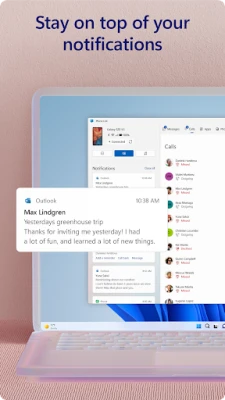 Raba hotuna tsakanin wayarka da kwamfutarka bai taɓa zama mai sauƙi ba. Ku yi ban kwana da aikawa da kanku imel don hotuna masu mahimmanci; da "Phone Link", zaka iya shiga, gyarawa, har ma da jawo da jefa hotuna cikin sauƙi tsakanin na'urorinka. Yi amfani da faɗin allon kwamfutarka, madanni mai kyau, da linzamin kwamfuta don mu'amala da wayarka, yana buɗe sabbin hanyoyin aiki da nishaɗi. Ba wai kawai ga hotuna ba, zaka iya kuma shiga wasu apps na wayarka kai tsaye daga kwamfutarka.