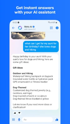 Messenger shine cibiyar sadarwarka ta musamman, yana baka damar haɗuwa da abokai da 'yan uwa a ko'ina cikin duniya ba tare da buƙatar lambar waya ba. Haɗa kai cikin sauƙi ta hanyar Facebook da Messenger don kira da tattaunawa kai tsaye. Kuma don dukkan buƙatunku na bayanai, Meta AI yana nan a matsayin mataimakinka na kwarai. Zai amsa kowace tambaya, ya ba da shawara, ya taimaka da aikin gida, da ma fiye da haka, yana sanya rayuwarka ta yau da kullun ta zama mai sauƙi.