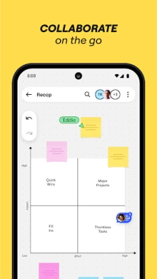 Miro yana ba da damar haɗa kai cikin sauƙi ta hanyar allon farin dijital na musamman don wayoyin hannu da allunan (tablets). Wannan manhaja ta samar da wuri guda inda za ku iya tattara ayyuka, ra'ayoyi, da cikakkun bayanai don haɓaka haɗin gwiwa tsakanin ƙungiya. Kowane abu da kuke buƙata don aiki, kirkira, da tsara abubuwa yana nan a cikin Miro, yana ba ku damar gudanar da taro na kan layi, tattaunawar ra'ayoyi, da tsarawa tare da sauƙi da inganci.