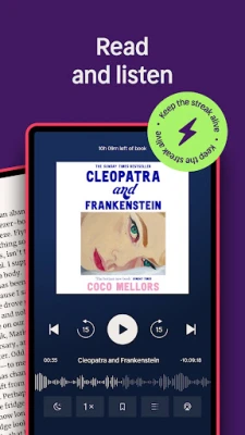 Masanin karatun littattafan Nextory yana kawo maka ƙwarewar karatu da ba a taɓa gani ba. Za ka iya daidaita girman rubutu, hasken allo, da launin baya yadda kake so, ko kuma zaɓar yanayin karatun shafuka biyu a kan allunan don jin kamar kana riƙe da littafi na gaske. Ka sanya alamun ajiye wuri (bookmarks) don komawa ga wani sashe, ko kuma ci gaba daga inda ka tsaya. Kuma ga masu son sauraron littattafai, mai kunna sautin littattafai na Nextory yana ba ka damar daidaita gudun sauraro, yin gaba ko baya cikin sauƙi, saita lokacin barci (sleep timer), da kuma lura da adadin da ya rage maka a cikin littafin. Hatta a yanayin ceton batiri, za ka iya ci gaba da jin daɗin littattafanka.