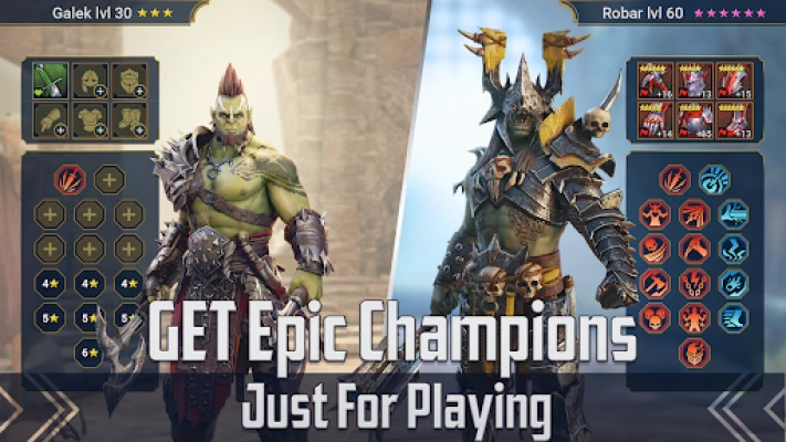 Ƙarfin yaƙi na **RAID: Shadow Legends** yana da zurfi, yana ba ku damar haɓaka jarumanku da kayan tarihi na musamman da kuma gina ƙungiyar yaƙi ta musamman. Akwai sama da miliyan ɗaya na yiwuwar haɗe-haɗe na jarumai da fasaharsu, yana ba ku damar gwadawa da ƙirƙira dabarun yaƙi marasa iyaka. Ku fuskanci manyan shugabanni kamar Magma Dragon ko Ice Golem a cikin duwatsu masu haɗari, inda za ku iya samun ganima mai ƙarfi da ƙwarewa. Ku jagoranci yaƙinku a cikin manyan yaƙe-yaƙe na labarin PVE, ku bincika wurare 12 masu ban mamaki, kuma ku 'yantar da Teleria daga ikon duhu.