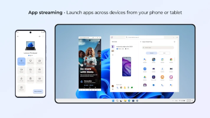 Bayan haka, Smart Connect yana ba da fasalin Clipboard wanda ke ba ka damar kwafi rubutu ko hotunan allo daga wata na'ura kuma ka manna su a wata ba tare da tangarɗa ba. Wannan haɗin kai mara misaltuwa yana tabbatar da cewa duk na'urorinka suna aiki tare a matsayin wata na'ura guda ɗaya. Don amfani da cikakken ikon Smart Connect daga Motorola, kana buƙatar kwamfutar Windows 10 ko 11 mai fasalin Bluetooth, tare da waya ko kwamfutar hannu mai dacewa. Don aiki yadda ya kamata, Smart Connect yana buƙatar wasu izini na musamman. Da fatan za a lura cewa wasu fasalulluka na iya bambanta dangane da nau'in na'urar. Don tabbatar da dacewar na'urarka, ziyarci: https://help.motorola.com/hc/apps/smartconnect/?t=compatible.